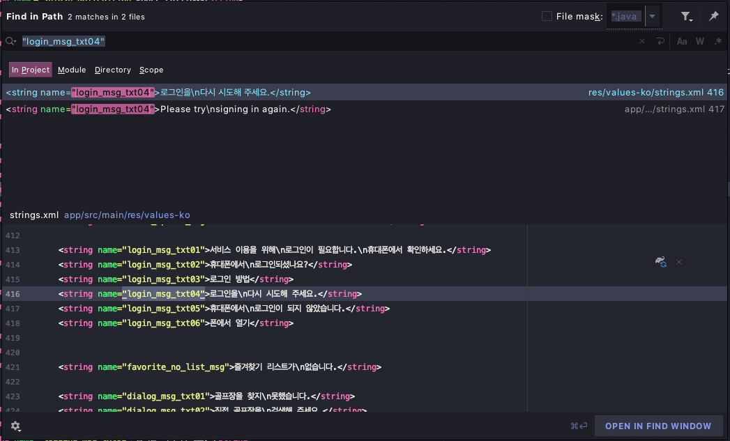 안드로이드 스튜디오를 Arctic Fox 로 업데이트 해보니 파일검색창이나 소스검색창, git로그창에서 한글이 깨져보이는 현상이 발생했습니다.