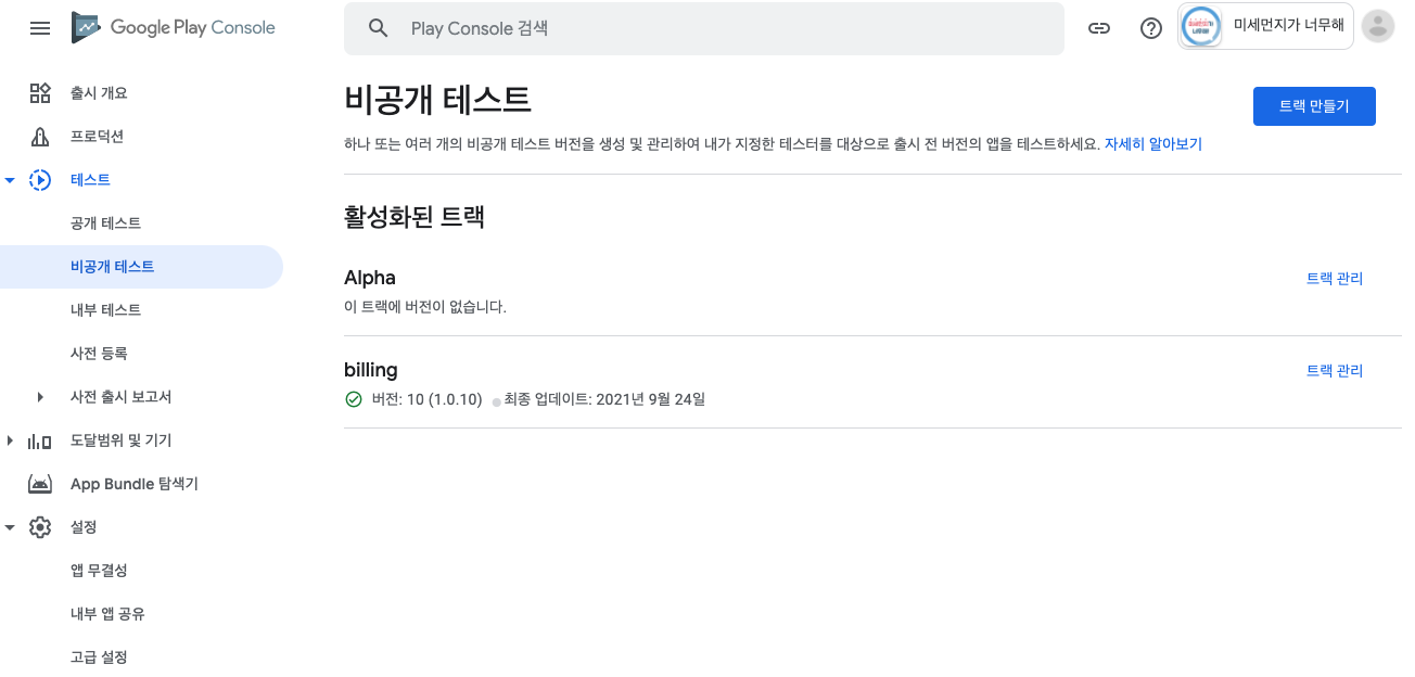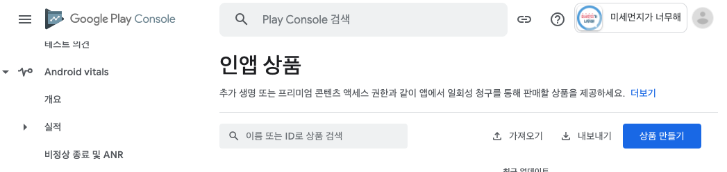 구글 플레이스토어 콘솔에서 해당앱으로 들어가