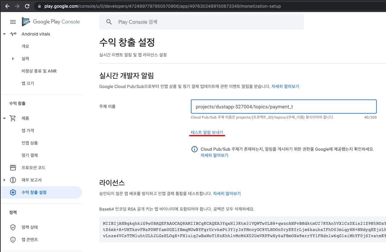 이정도면 구글 인앱 Billing 기능을 이용하기 위해 구글 플레이스토어 콘솔과 구글 클라우드플랫폼 에서 해야할 설정들은 다 된것입니다.