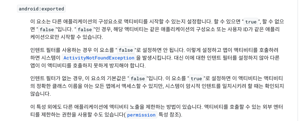 android:exported="true"
