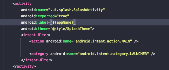 Manifest 파일에서 intent-filter를 사용하는 액티비티에는 모두 아래처럼 셋팅을 해줍니다.
