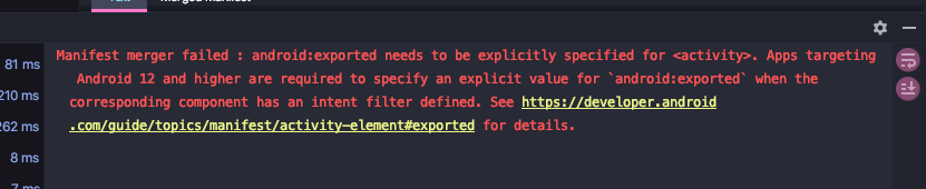 Manifest merger failed : android:exported needs to be explicitly specified for <activity>.