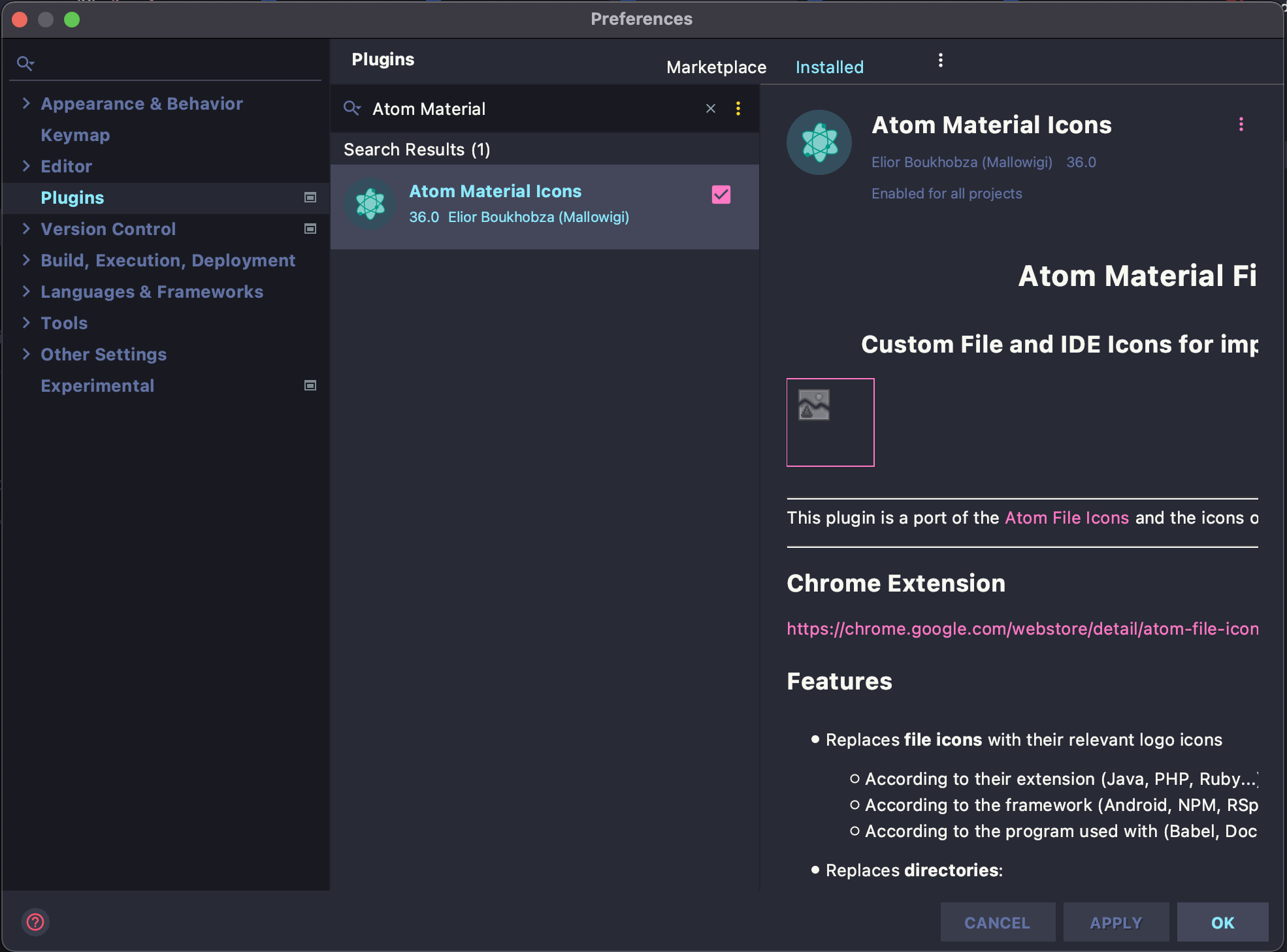 폴더와 아이콘을 종류별로 이쁘게 표시해주는 플러그인입니다.