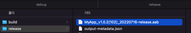안드로이드 release앱을 빌드하면 생성되는 aab 파일에는 별다른 이름이 없습니다.