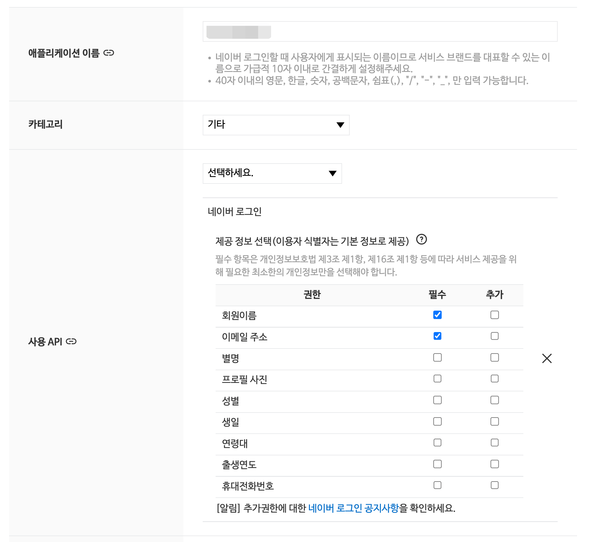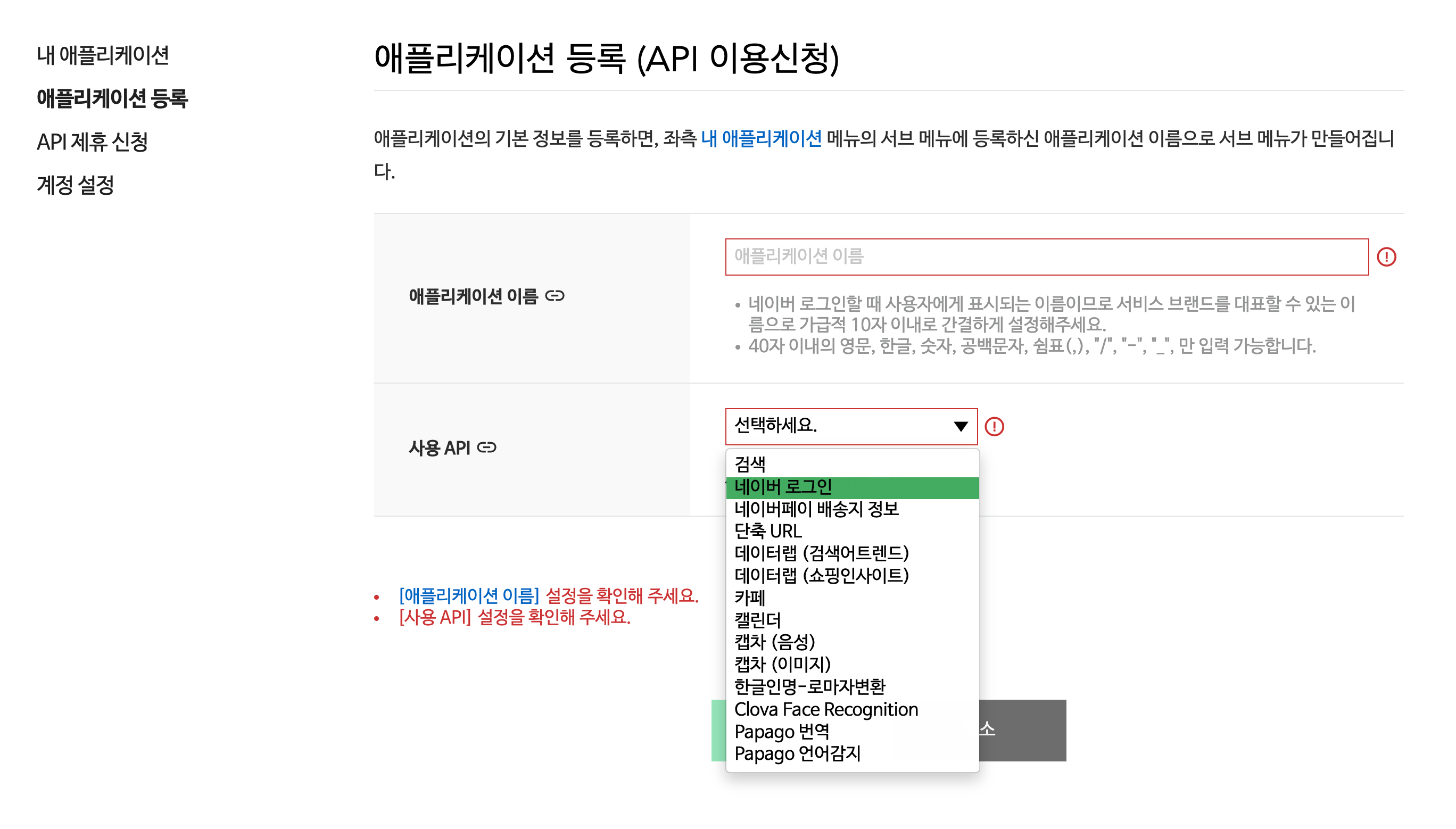 우선 네이버 개발자센터에서 앱을 추가해줍니다.