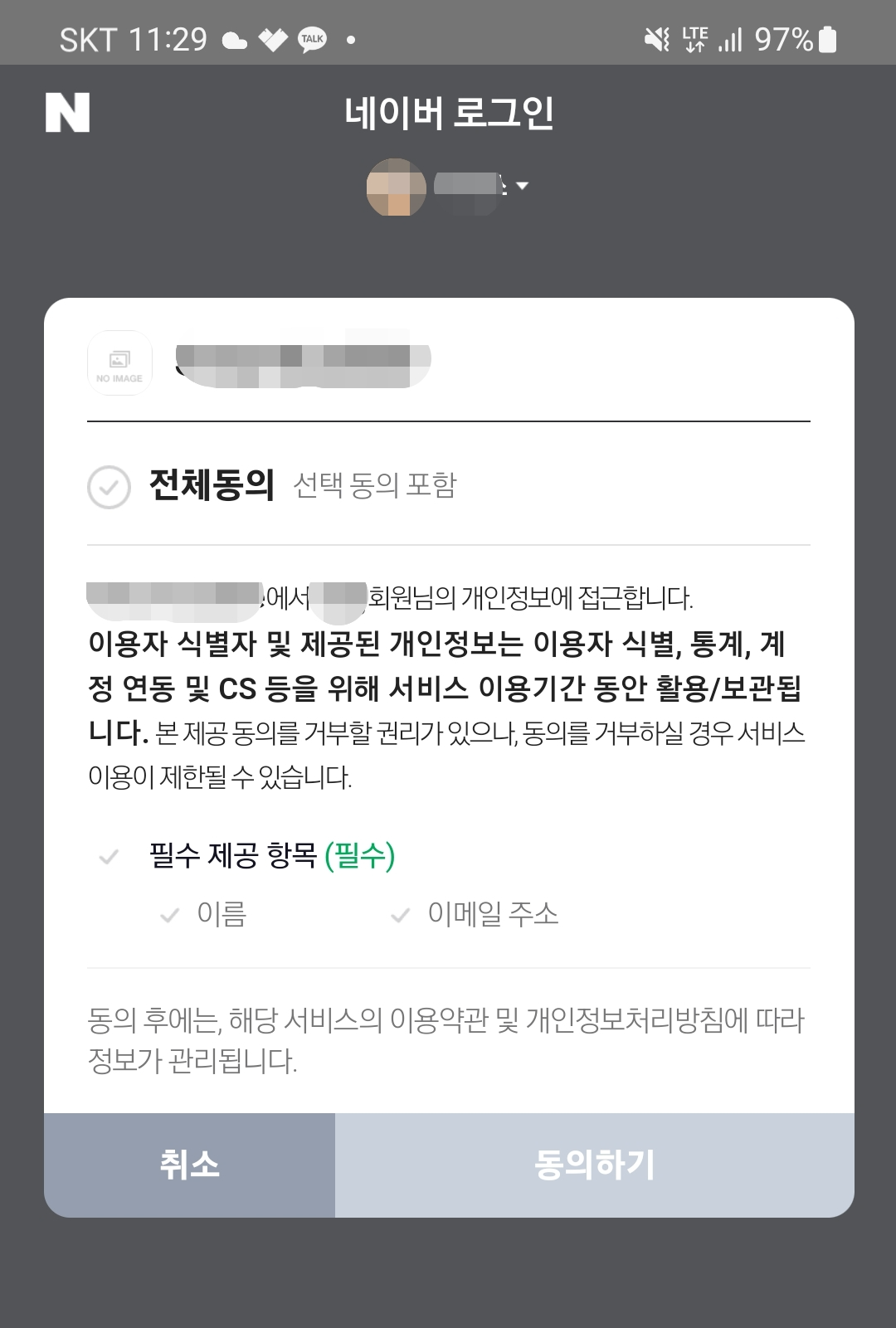 이제 앱을 실행해보면 다음과 같은 네이버 로그인 허용 팝업이 표시됩니다.