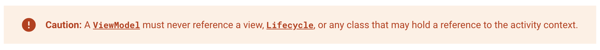 안드로이드 개발문서에서도 ViewModel에 View references에 대한 참조가 없어야 한다고 강조합니다.