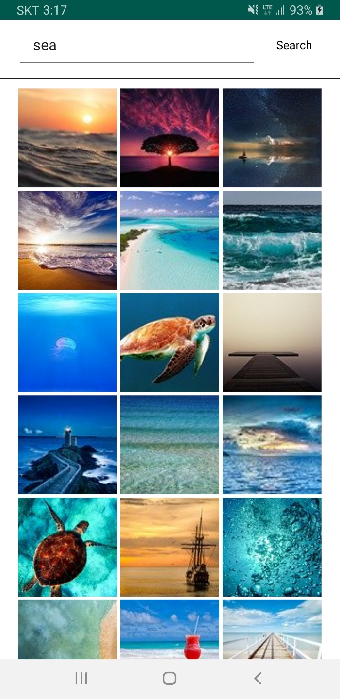 이미지는 화면에 정사각형 형태로 표시되도록 width 값을 계산해서 layoutParam 으로 처리해줍니다.