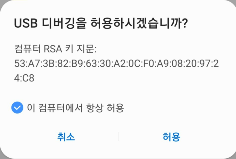 usb 디버깅을 허용하시겠습니까? 메세지가 계속 뜨고 안드로이드 스튜디오에서도 기기명이 보이다 안보이다를 반복했다.