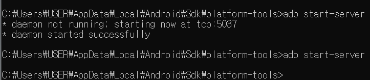 명령이 성공한 후에 안드로이드 스튜디오를 실행하면 연결상태가 꾸준히 유지된다.