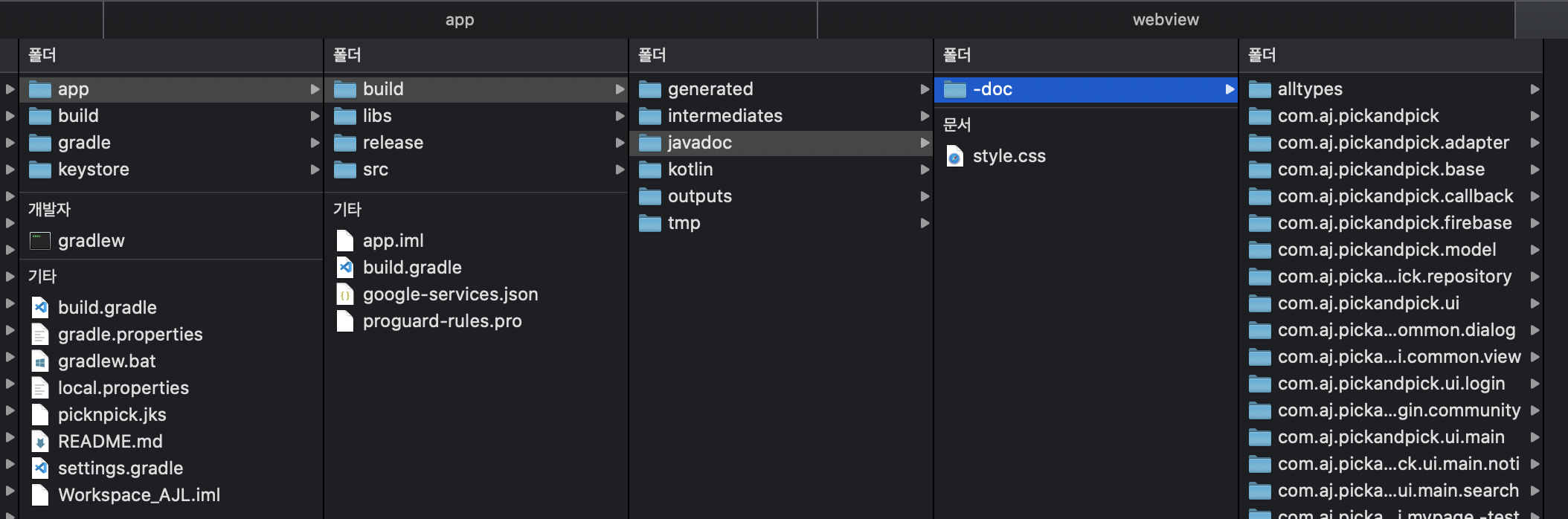 이렇게 셋팅한후 terminal 에서 ./gradlew dokka 라고 명령어를 입력면 app/build/ 에 javadoc 형태로 만들어지는것을 확인할 수 있습니다.