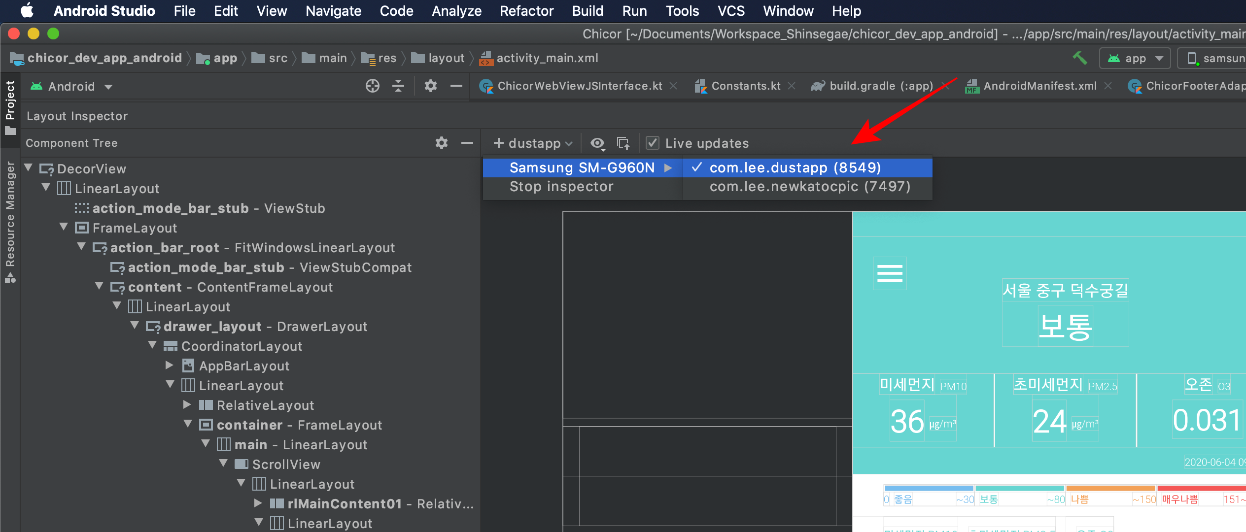 안드로이드 스튜디오 4.0 버전에서 업데이트된 Live Layout Inspector 기능을 살펴보겠습니다.