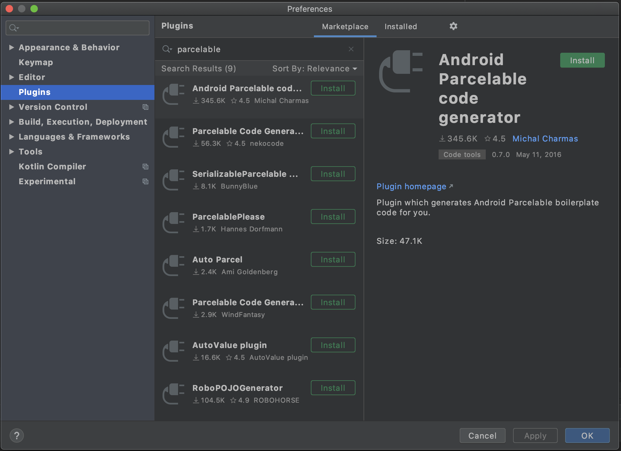 하지만 Parcelable을 이용하기 위해선 구현해줘야 하는 함수들이 많습니다.