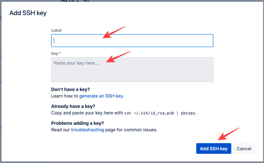 이제 생성된 SSH key 를 Bitbucket 에 등록해주면 된다.