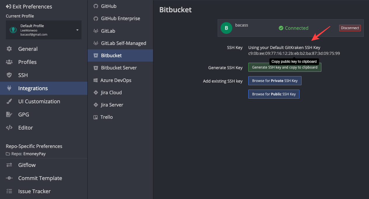 일단 GitKraken과 Sourcetree가 bitbucket을 접근할 수 있도록 SSH 인증키를 등록해보자.
